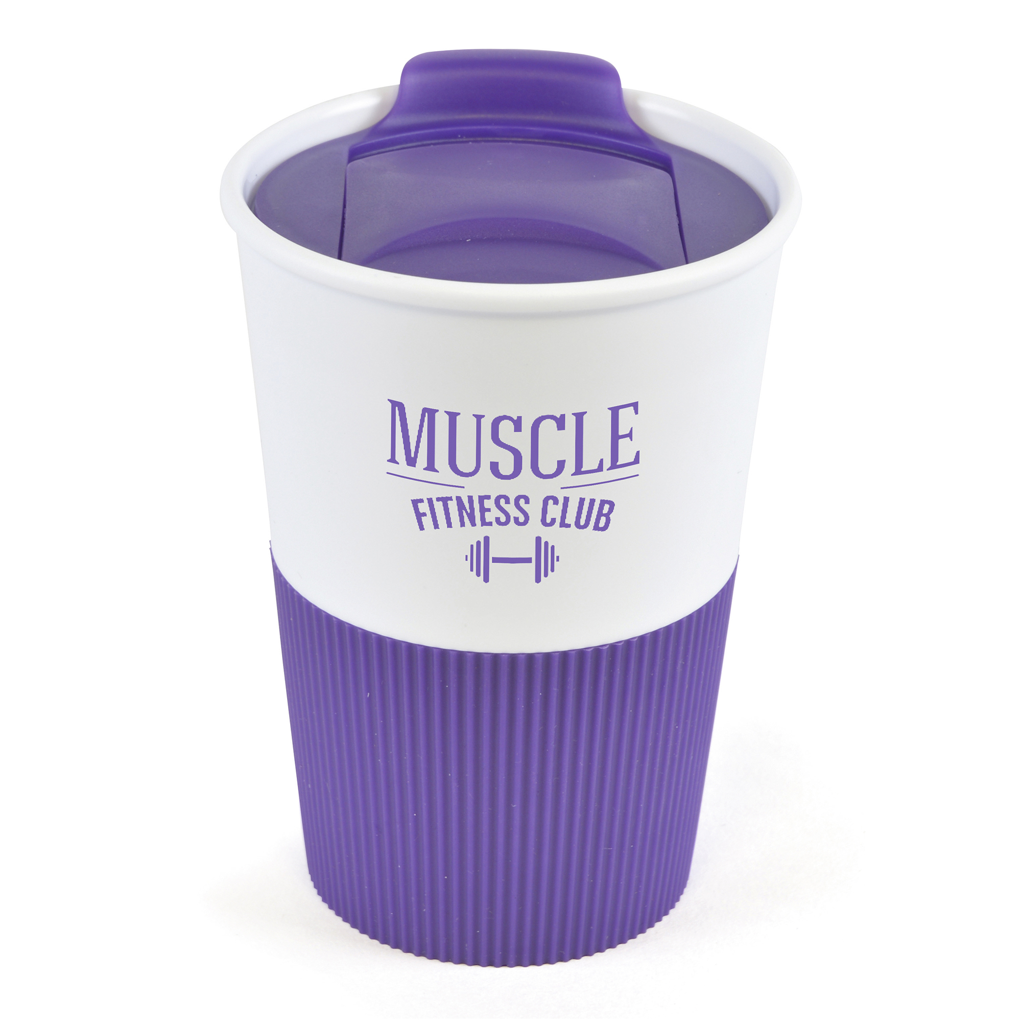 | MG0806PL | 'Grippy' WHITE 330ml tumbler with PURPLE rubber feel finish to grip | 1517 |
