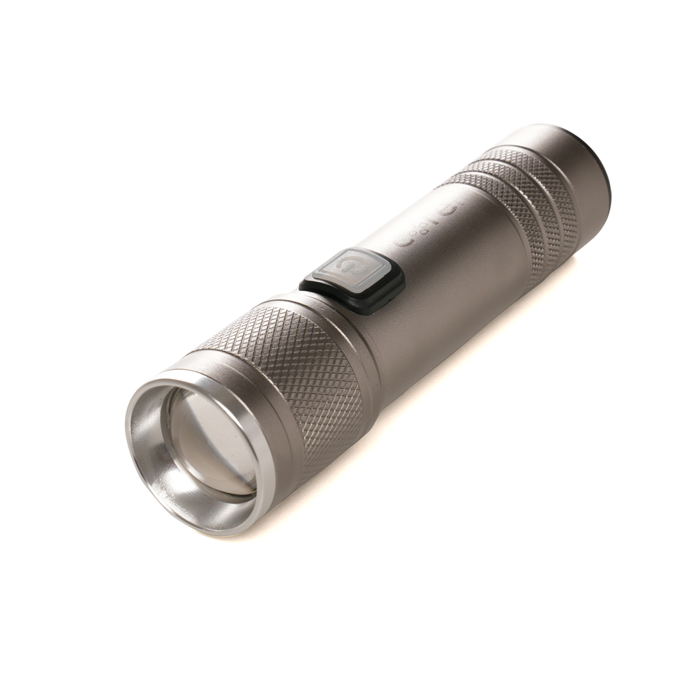 Light up your brand with this sleek and practical rechargeable LED torch. Made with a durable aluminium body, it features two brightness settings, a USB-C charging port, and comes with a USB-C to USB cable for easy recharging for the 800mah battery. Perfect for promoting your brand, this compact and reliable torch makes an excellent giveaway for corporate events, trade shows, or as part of any promotional campaign. Customizable with your logo, it's a thoughtful, functional gift that ensures your brand shines bright long after an event!