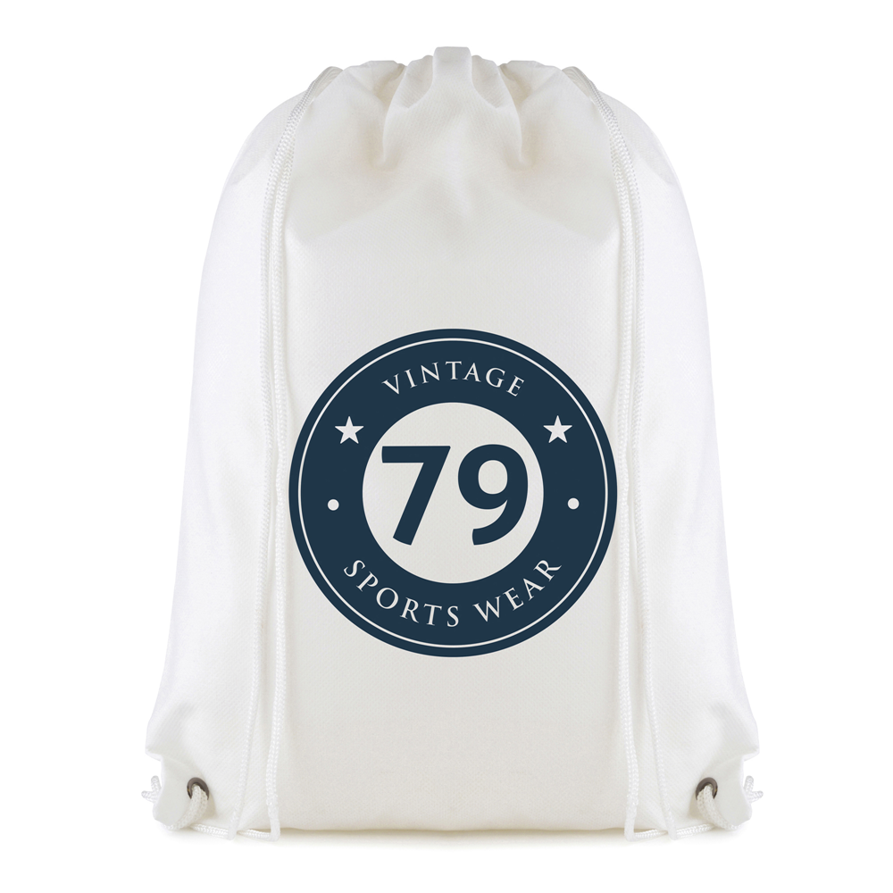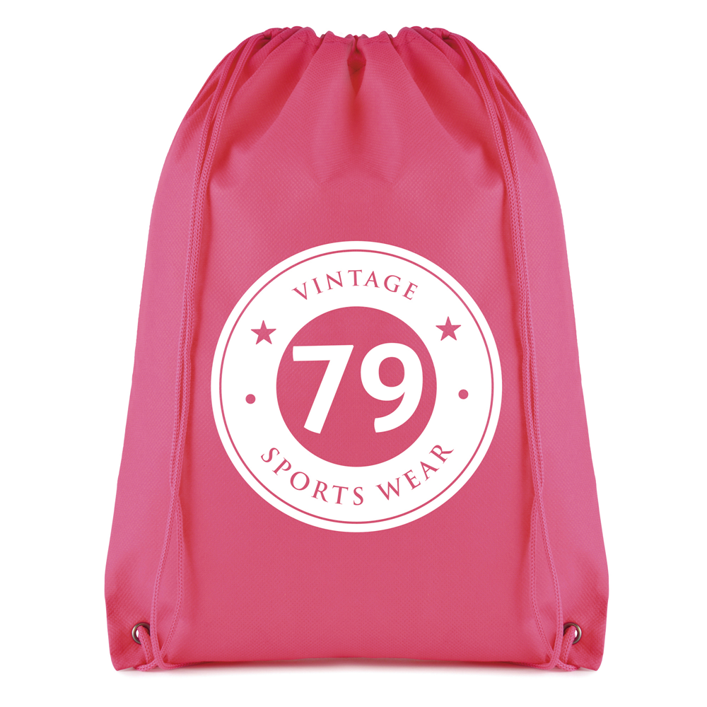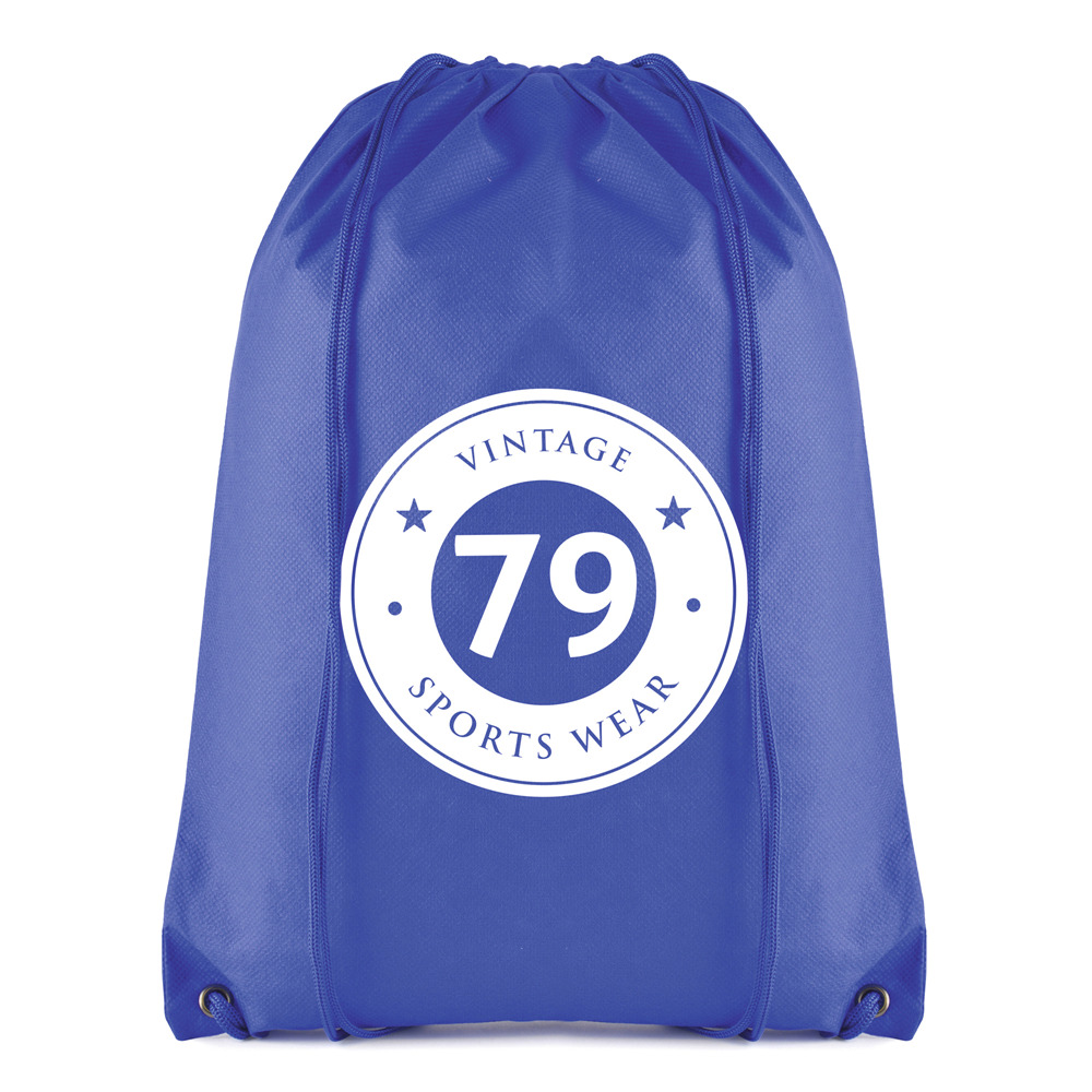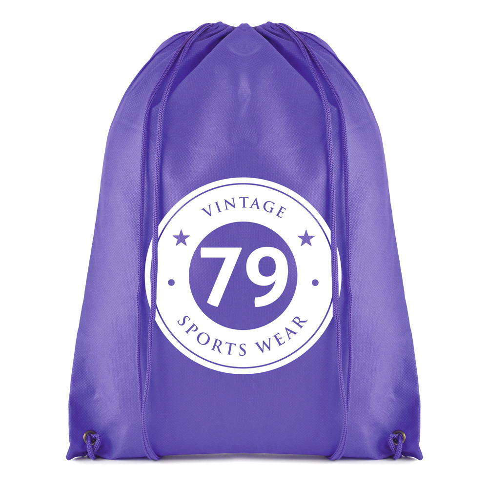 80gsm non woven PP drawstring bag with matching coloured string. A great low cost drawstring bag, ideal for schools and charity promotions.