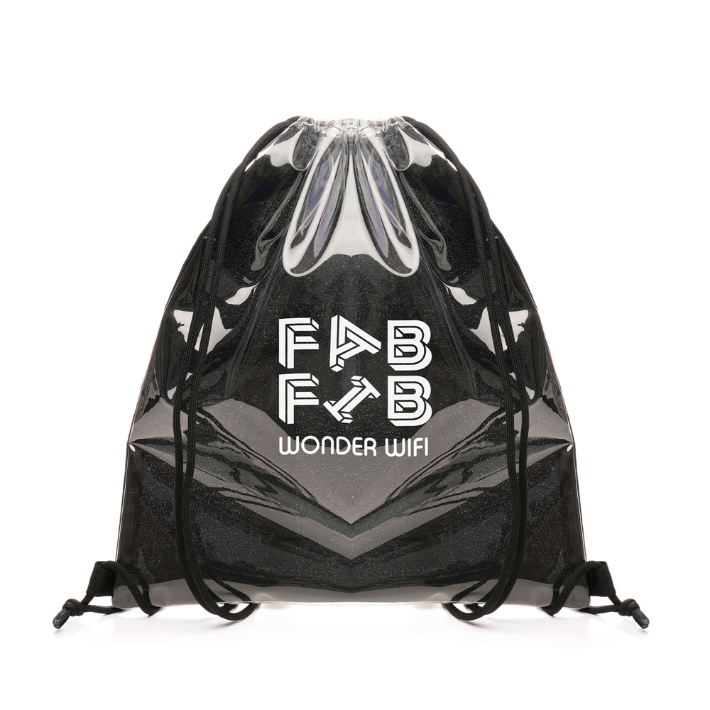 TRANSPARENT FABRIC DRAWSTRING BAG
